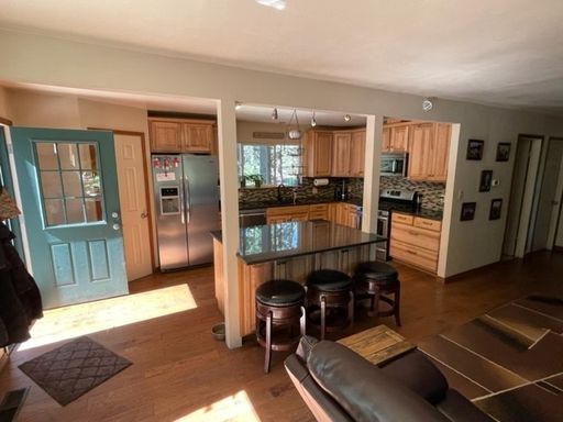 This very sweet and charming 3Bd 2Ba home is ready for you to make it your home away from home for an amazing Winter season. Boasting a beautiful view and only a short drive to Sierra Ski resort and to any of our other wonderful ski resorts in town as well. The wood fireplace will help you set a lovely mood in the home during those cold winter nights, but still has forced air heating for those extra cold nights. The kitchen is nicely equipped with stainless steel appliances for some fun cooking or baking with the family. This home will is also pet friendly so bring the 4 legged family member to enjoy some snow play time.