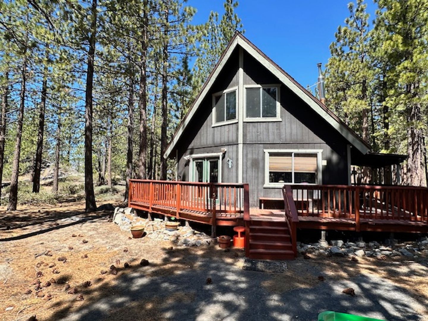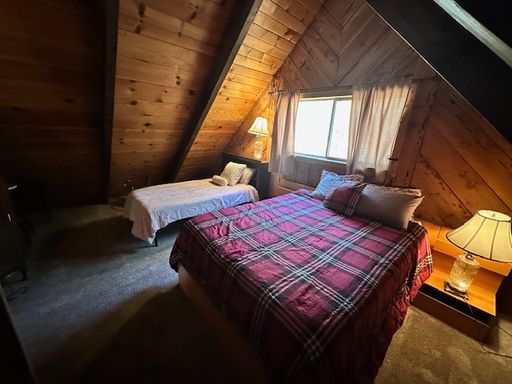 Available for seasonal lease from 3-6 months! Make your Lake Tahoe vacation one to remember in this authentic 2 level chalet in the woods. The rustic feel and attractive A-frame design is sure to please. You'll find the open living space downstairs cozy with the gas fireplace, flat screen TV, dining table, and fully equipped kitchen. Off the dining area is a cute deck that wraps around most of the home so take in the forest and mountain views while BBQ in'. The open loft upstairs is also the third bedroom, and offers lots of sleeping space. Heavenly California Lodge is 4 blocks away, and the casinos and Heavenly Village is only 5 minutes away. Sorry this home does not have A/C! Sorry this unit is NOT pet friendly. F, T, T, Q, F,